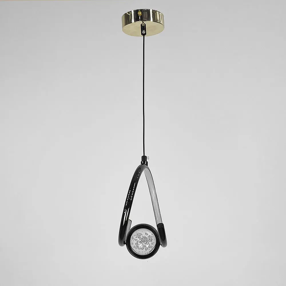 Корпус світильника виготовлений із металу у відтінку чорного хрому, що додає сучасного стилю, а стельова основа виконана в золотому кольорі, створюючи розкішний акцент. Основний елемент світильника — це вигнута дуга, яка делікатно обвиває інкрустовану скляну кульку з унікальною текстурою бульбашок всередині, що надає виробу виразного декоративного ефекту. Корпус світильника має висоту 20 см і ширину 10 см, що дозволяє йому гармонійно вписатися в будь-який інтер’єр, не перевантажуючи простір, але привертаючи увагу. Світильник має три режими освітлення з загальною потужністю 6 Вт, що дозволяє варіювати світло залежно від потреби. При монтажі Ви можете регулювати загальну висоту світильника (від 25 до 155 см) відповідно та особливостей інтер'єру. Цей світильник чудово підійде для використання у сучасних інтер’єрах у стилі модерн або хай-тек. Його можна встановити в зонах вітальні, спальні, на кухні або у передпокої, додаючи простору елегантність та легкість. Кількість джерел світла: 20 Колір основи: Золотий Розмір стельової основи: 10х2,5 см Колірна температура: 3000–4500–6000К Максимальна висота: 155 см Мінімальна висота: 25 см Матеріал основи: Метал Розмір монтажної планки: 10 см Тип кріплення: Монтажна планка Потужність (Вт): 6