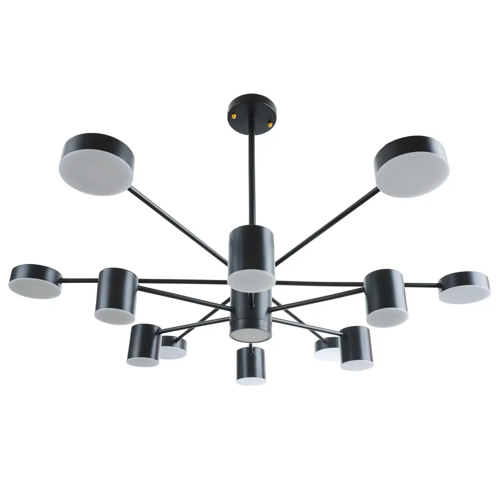 Світлодіодна люстра BL-748S/12 WW+CW 72W*2 - це сучасний модний світильник зі стильним дизайном чорного кольору. Модель підійде для спальні, вітальні, залу або холу. Має конструкцію, що включає тринадцять плафонів циліндричної форми різної висоти з вбудованими світлодіодами в якості джерела світла загальною потужністю 144 Вт. Світлодіодна люстра може забезпечувати теплу або холодну температуру світіння. Світлодіоди генерують світловий потік з віддачею до 75 лм/Вт. ЛЕД джерела дуже економні й мають тривалий термін експлуатації. Люстра створює потужний світловий потік з високим індексом передачі кольору (> 80Ra). Дизайн люстри робить модель відповідною для інтер'єрів, оформлених в різних стилях. Габаритні розміри 980*450 мм.