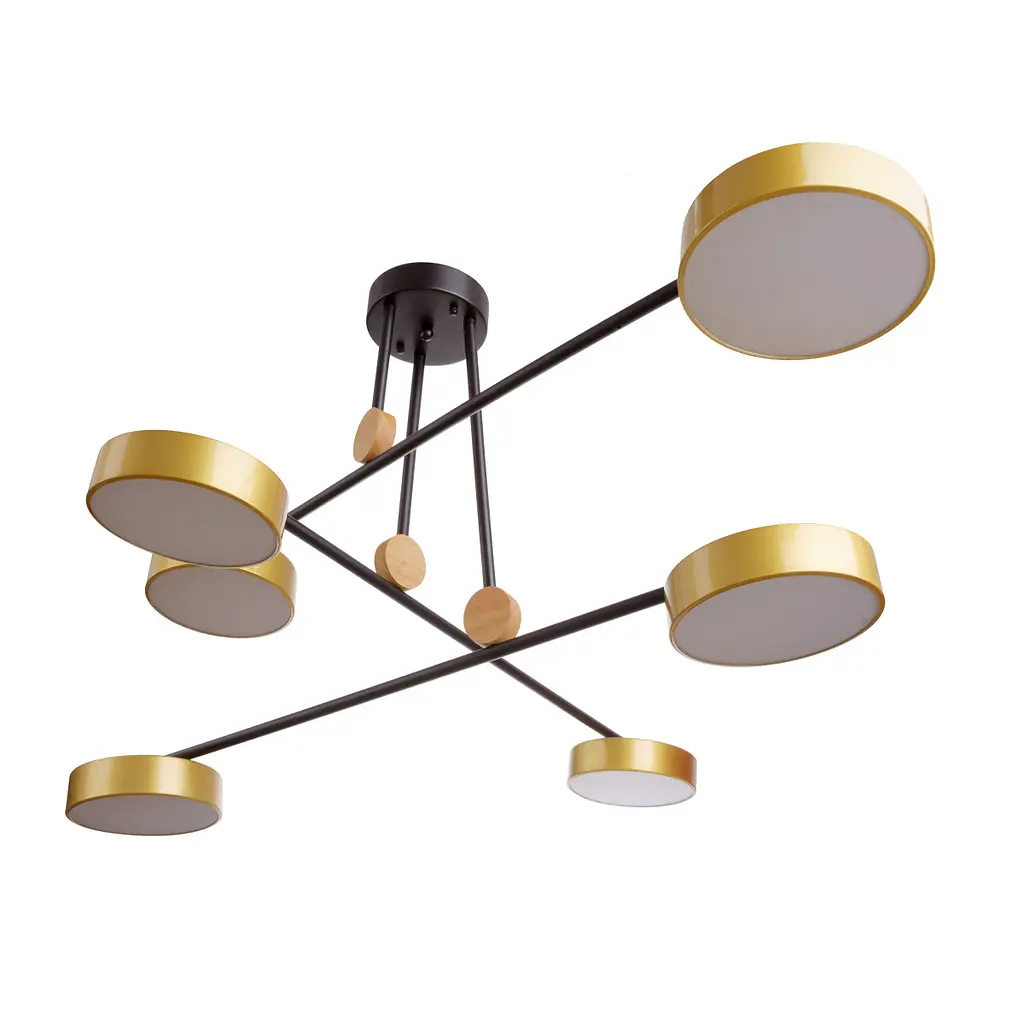 Світлодіодна люстра BL-939С/6 LED 72W WW + NW + CW BK/G випромінює світіння різних відтінків (тепле, нейтральне, холодне), режими роботи можна змінювати за бажанням власника. Модель призначена для освітлення вітальні, спальні, кухні, невеликого холу. Люстру можна застосовувати й для комерційних об'єктів. Вона впишеться в інтер'єр невеликого ресторану, кафе, салону краси або офісу, оформлених в стилі хай-тек, футуризм, мінімалізм. Конструкція люстри дещо незвична: шість плафонів з вбудованими світлодіодами кріпляться на металеві прути на тримачах, які йдуть від основи. Корпус світильника - чорний, плафони виготовлені в золотистому кольорі. Такий контраст робить освітлювальний прилад стильним і привабливим. Люстра встановлюється на монтажній планці. Потужність світильника - 72 Вт, світлова віддача - 60 лм/Вт. При невеликому споживанні електроенергії люстра генерує досить потужний світловий потік, який забезпечує якісне освітлення приміщення.