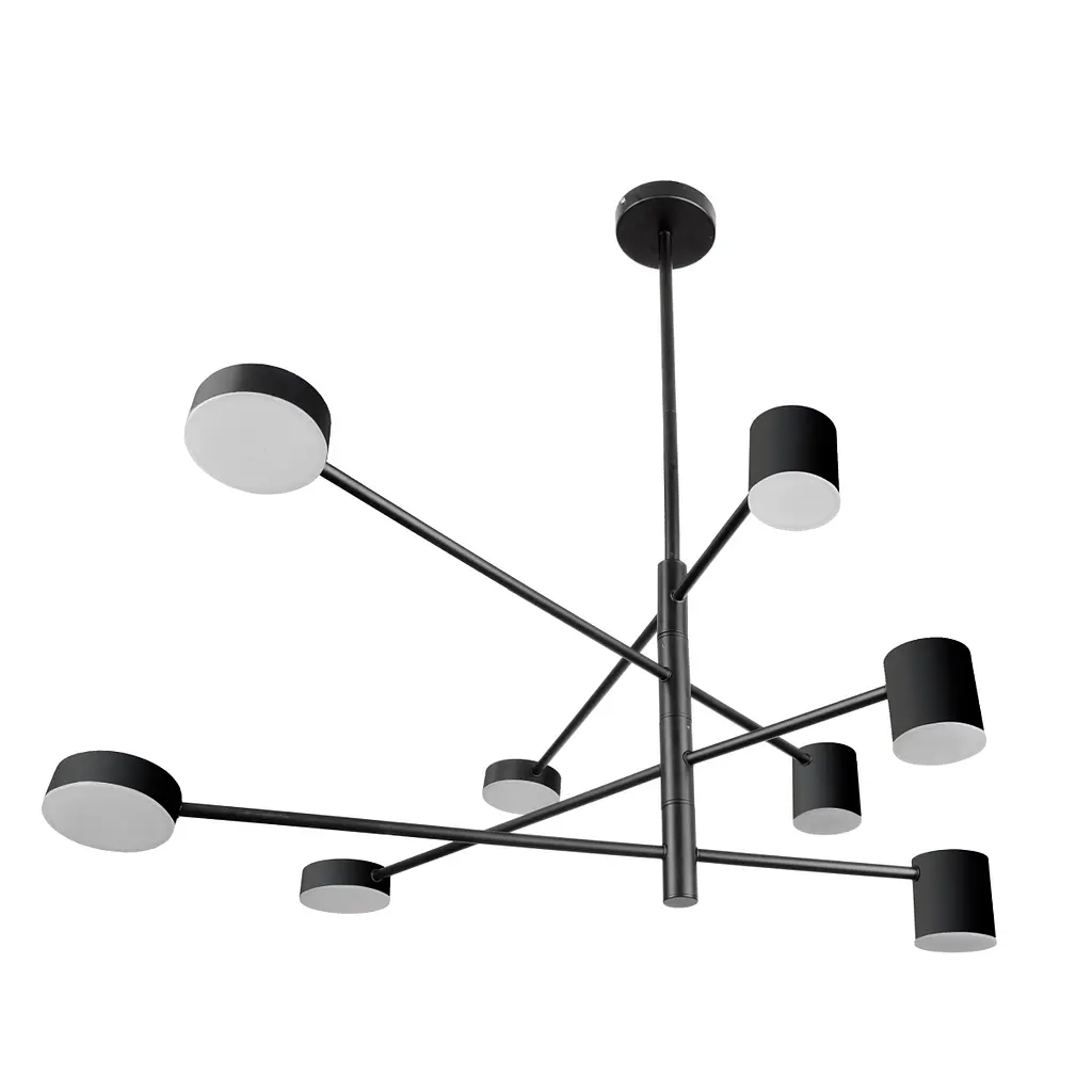 Світлодіодна сучасна люстра BR-01 631S/8 LED 56W WW+NW+CW BK призначена для освітлення приміщень, інтер'єри яких оформлені в стилі хай-тек, техно, лофт, мінімалізм. Її потужність - 56 Вт. Цього вистачить для освітлення вітальні, спальні, кухні. Також такий світильник можна використовувати для освітлення готелів, невеликих магазинів, кафе і ресторанів. Люстра відрізняється оригінальним дизайном: до чорного металевого корпусу кріпляться тримачі з плафонами круглої та циліндричної форми. Модель має 8 джерела світла з вбудованими світлодіодами, що генерують досить потужний світловий потік з високим індексом передачі кольору - 80Ra. Колір світіння люстри можна міняти, перемикаючи режими. Світлова віддача люстри - 60 лм/Вт. До стелі освітлювальний прилад кріпиться за допомогою монтажної планки.