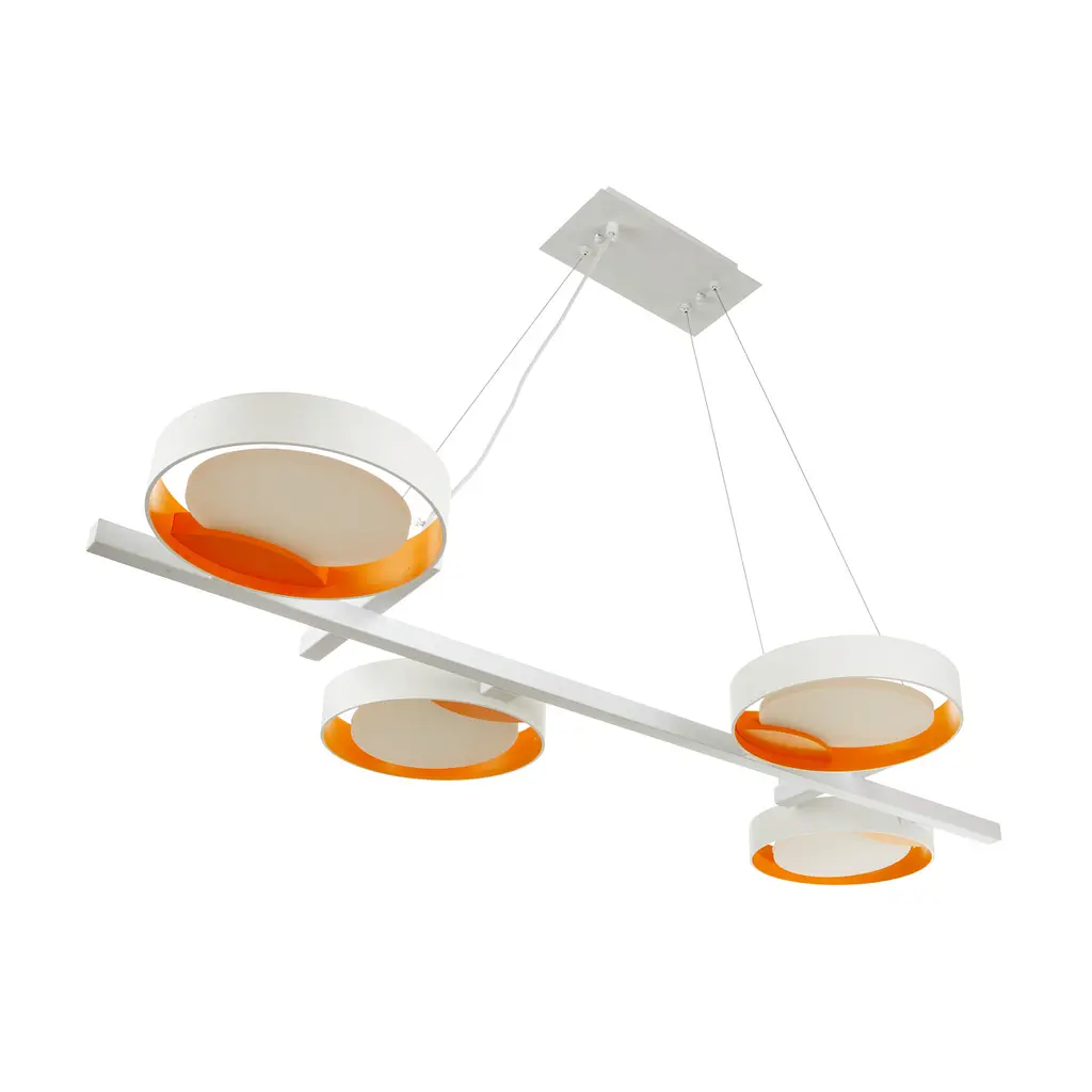 Світлодіодна люстра BR-01 666S/4 LED 20W NW WH/G - це популярний модний світильник зі стильним, оригінальним дизайном білого та золотого кольору. Модель підійде для спальні, вітальні, передпокою із сучасним інтер'єром. Складається з чотирьох білих плафонів круглої форми, внутрішня частина яких золотиста та обладнана високоефективними вбудованими світлодіодами загальною потужністю 20 Вт, які забезпечують нейтральний колір світіння. Плафони разом з конструктивним елементом білого кольору за допомогою підвісу кріпляться до основи світильника. Основа монтується до стелі за допомогою монтажної планки. Світлодіоди генерують світловий потік з віддачею 60 лм/Вт. ЛЕД джерела дуже економні й мають тривалий термін експлуатації. Люстра створює потужний світловий потік з високим індексом передачі кольору (> 80Ra). Люстра призначена для роботи в мережі змінного струму з номінальною напругою 220 В. Рівень захисту корпусу від потрапляння всередину пилу та вологи ІР20.