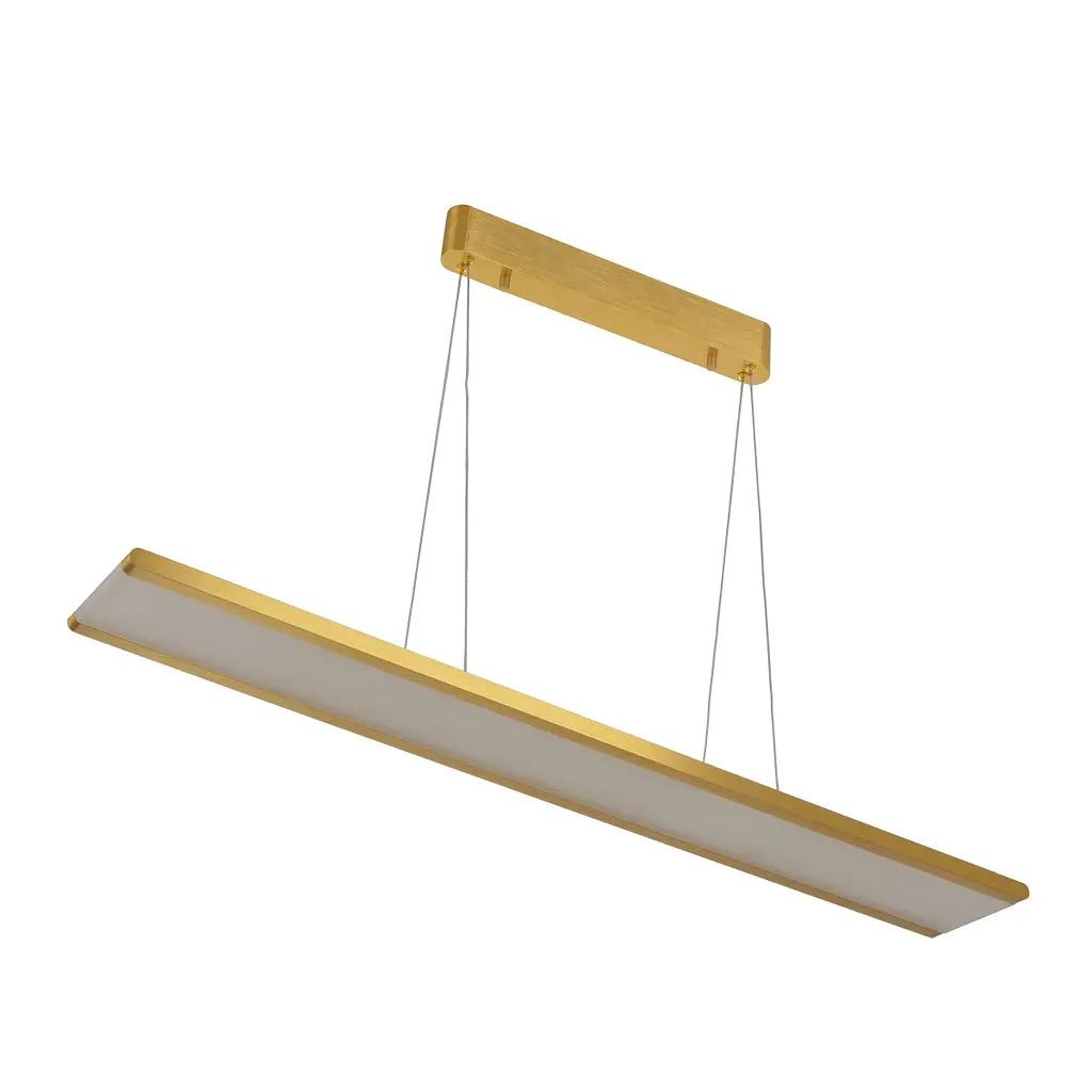 Сучасна люстра BL-839S/50W WW G прикрасить приміщення, інтер'єр якого оформлений в стилі лофт. Проста прямокутна форма сподобається всім шанувальникам мінімалізму. Світильник призначений для центрального або додаткового освітлення. Його заснування монтується на стелі. Плафон з металевим обрамленням з обох сторін підвішений на тросах. Як джерело світла застосовуються вбудовані світлодіоди, вони наповнюють приміщення теплим приємним світлом. Жовтий плафон гармонійно поєднується з металевою основою золотистого кольору. Теплі відтінки сприяють створенню затишної атмосфери в приміщенні. Потужність люстри становить 50 Вт. Цього цілком достатньо для комфортного освітлення вітальні, спальні, передпокої площею понад 15 кв. м. Освітлювальний прилад можна використовувати не тільки в житлових, але і в комерційних приміщеннях. Він підійде для офісу, кафе, ресторану, готельних номерів.