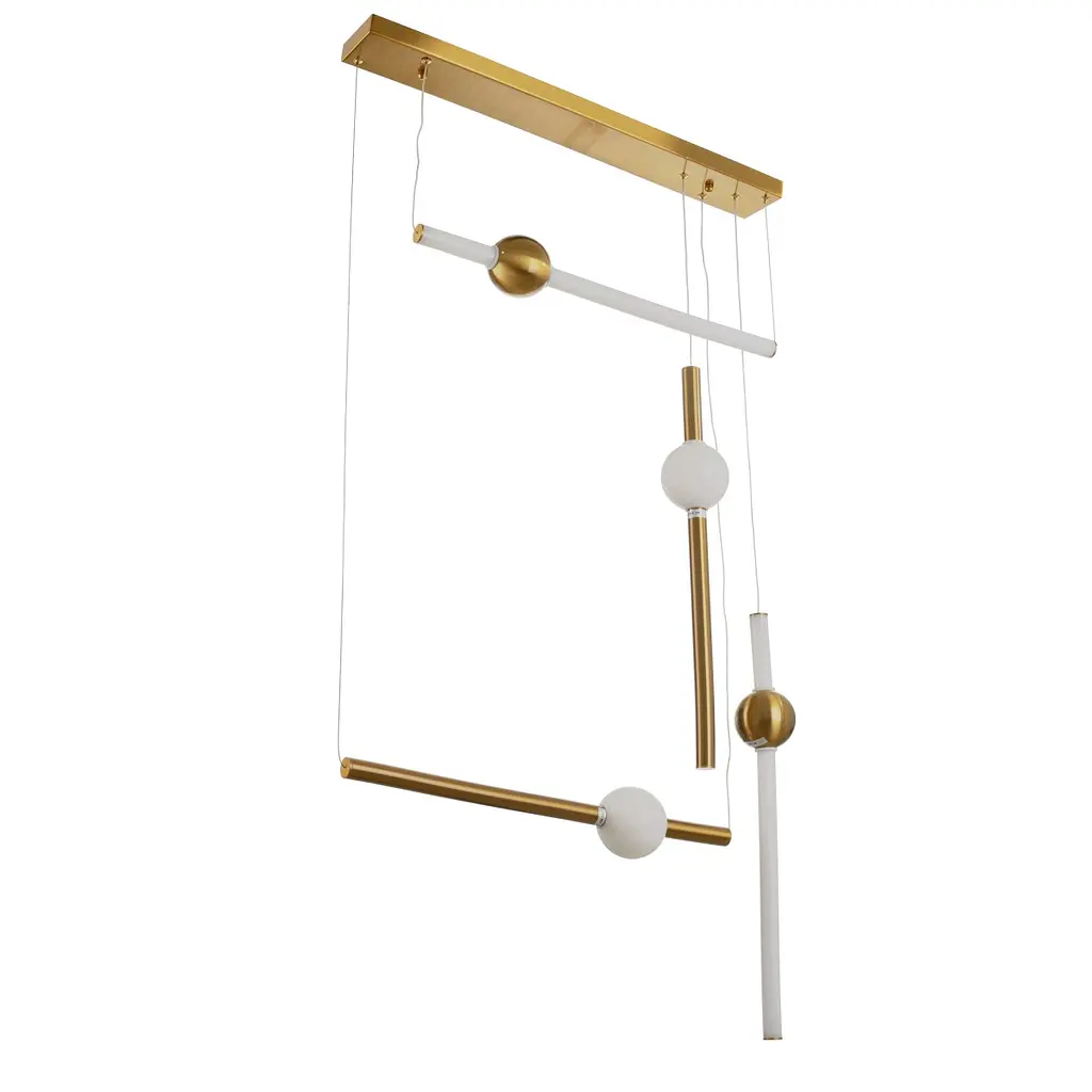 Люстра моделі BL-901S/63W WW G обов'язково припаде до смаку любителям нестандартних рішень. Вона виконана з чотирьох довгастих елементів, що перетинаються між собою на зразок решітки. Три з них виступають як джерела світла, один - суцільнометалевий. Вони доповнені колами, три з яких зроблені з металу, а один - із пластику. Вся конструкція має регульовану висоту завдяки тросам, які кріпляться до стелі за допомогою монтажних планок. Потужність освітлювального приладу складає 63 Вт, джерелами світла тут виступають вбудовані світлодіоди, термін їх експлуатації досягає 50 000 годин. Вони не мерехтять в процесі роботи, на їх працездатність не впливає кількість циклів включень-виключень, вони не перегорають і не завдають шкоди природі. Температура світіння - тепла біла. Такий світильник може стати оригінальним інтер'єрним акцентом для житлових або торговельних приміщень, залів готелів або хостелів, шоу-румів або ресторанів.