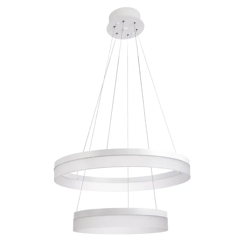 Відсутність зайвих деталей, обмежена кількість декору і проста геометрична форма - три головні відмінності люстри у сучасному стилі BR-962S/36W+24W LED WH. Оригінальний і яскравий освітлювальний прилад ідеально впишеться в світлі стіни, великі вікна з легкими фіранками, складе виграшне поєднання з м'якими меблями. Люстра виготовлена з металу і скла, конструкція представлена двома колами, що світяться. Зовнішня частина кола металева, білого кольору, а внутрішня скляна, матова, теж білого кольору. Саме вона служить розсіювачем. Висоту освітлювального приладу можна регулювати за допомогою металевих тросів. Джерелом світла виступають світлодіоди - потужні і безпечні джерела світла, які здатні прослужити близько 50 000 годин. Навіть якщо один світлодіод вийде з ладу, люстра продовжить працювати.