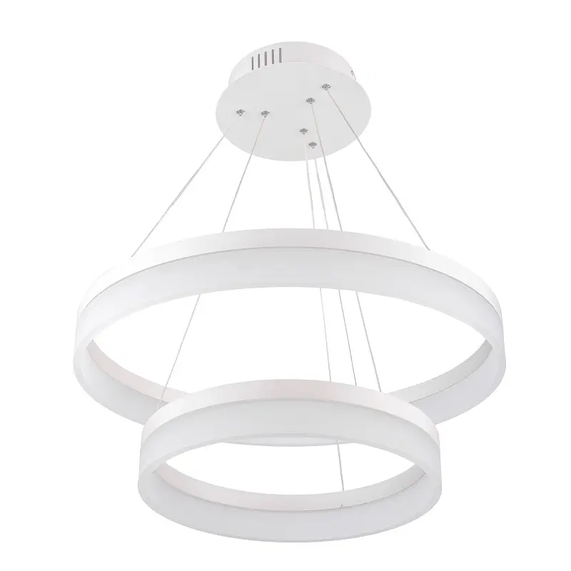 Авангардний підвісний світильник BR-962S/36W+54W LED WH от ТМ Brille - вдалий варіант для освітлення вітальні з високою стелею, ресторану, готельного номера тощо. Джерелом світла служать світлодіоди загальною потужністю 90 Вт. Завдяки їм можна яскраво освітити простір рівним теплим білим світлом, а також заощадити витрати на електроенергію. Люстра виготовлена з металу і скла, її конструкція представлена у вигляді двох кілець, нижня частина яких скляна, а верхня металева. Висоту, на якій будуть знаходитися кільця, можна регулювати за допомогою металевих тросів. Люстра призначена для роботи в мережі 220 В.