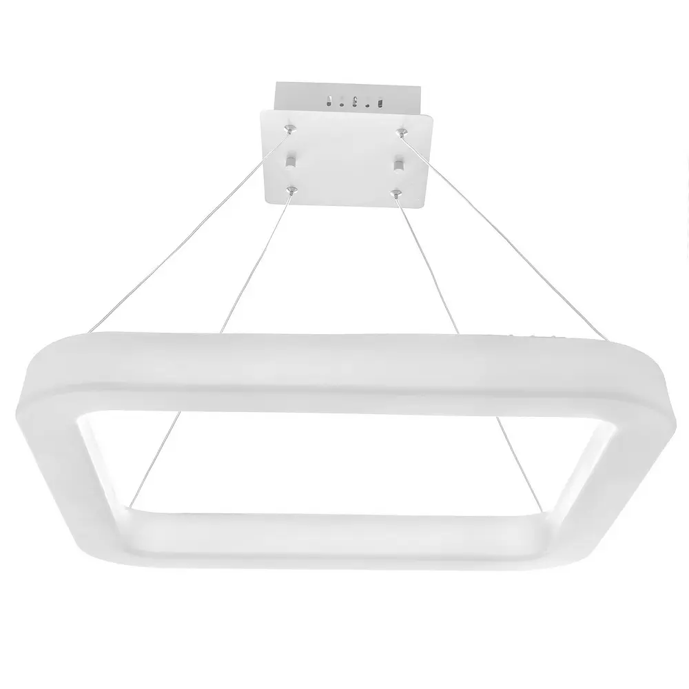 Підвісний світильник BR-997S/43W LED WH має прості дизайн і конструкцію, добре підійде для освітлення офісних приміщень, шоу-румів, просторих кухонь, виконаних в урбаністичному дизайні. Конструкція представлена одним плафоном з пластиковим розсіювачем світла білого кольору, прикріпленим до металевої основи за допомогою металевих тросів. Довжину тросів можна регулювати. Джерелом світла є світлодіоди, які випромінюють рівне тепле біле світло зі світловим потоком 70-75 лм та загальною потужністю 43 Вт. Світильник розрахований для роботи від мережі 220 В.
