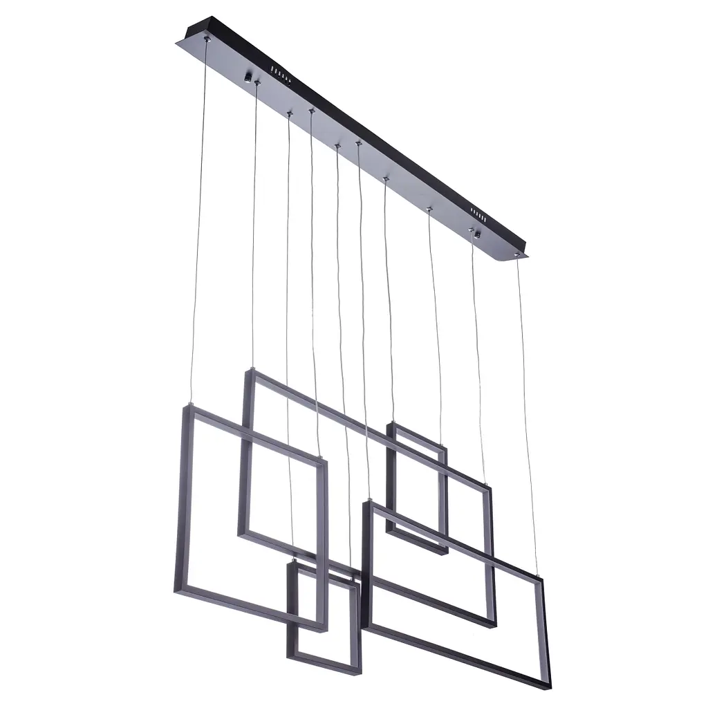 Дана LED люстра перевтілить ваш будинок і не залишить байдужим ні гостей ні господарів. Оригінальний дизайн і відмінна якість будуть тішити вас довгі роки. Люстра має вбудовані світлодіодні джерела світла, які дають тепле біле світло. Світловий потік становить 70-75 lm. Виконано прилад в чорному кольорі і має асиметричну форму. Кріпиться люстра за допомогою монтажної планки. Цей освітлювальний прилад стане прикрасою, як для вітальні, так і для спальні.
