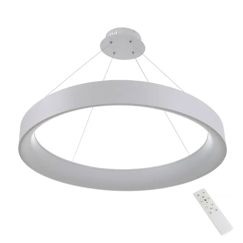 Світлодіодна люстра з пультом BL-483S/2x48W LED RM WH працює в трьох режимах. Вбудовані світлодіоди створюють світіння теплого, холодного і нейтрального відтінків. ЛЕД люстра білого кольору виготовлена з металу і пластику. Металева основа встановлюється на стелю за допомогою монтажної планки. Круглий пластиковий корпус кріпиться до неї на тонких регульованих підвісах. Потужність світлодіодної люстри - 96 Вт, індекс передачі кольору досить високий - 80 Ra. На всю продукцію діє гарантія.