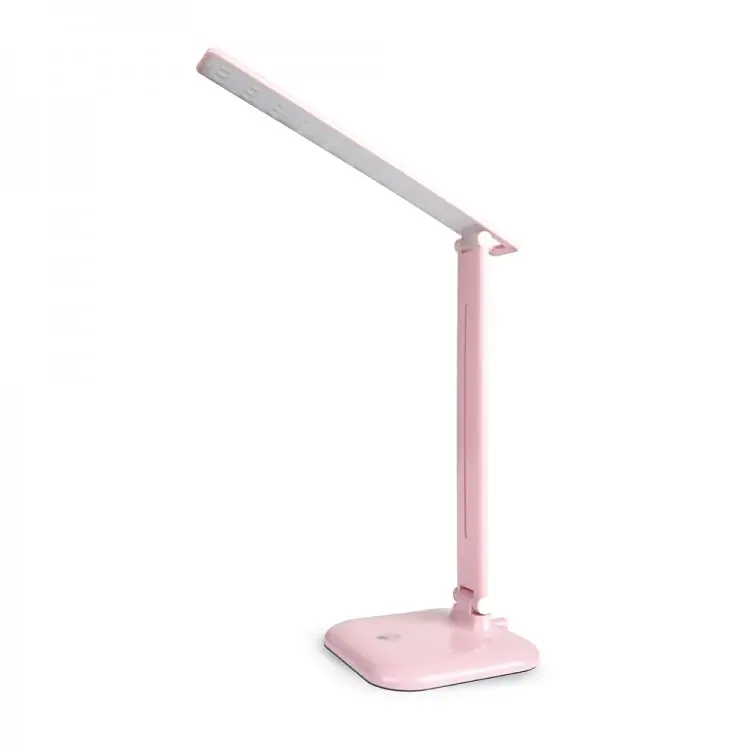 Світильник оснащений світлодіодом із колірною температурою 6500K (холодне світло), що забезпечує світловий потік 550 лм і високий індекс кольоропередачі Ra≥80 для реалістичного відображення кольорів, комфортного і безпечного для очей освітлення. Сенсорний перемикач рівня яскравості, розташований на основі, дозволяє плавно регулювати яскравість, роблячи світильник придатним для навчання, роботи, відпочинку або використання як нічник. Складний корпус дає змогу легко змінювати напрямок і кут світла, а в складеному вигляді світильник займає мінімум місця. Корпус і розсіювач виготовлені з міцного пластику, що забезпечує довговічність (ресурс роботи 25 000 годин). Модель економить до 80% електроенергії завдяки світлодіодній технології. Розміри світильника – 360×150×150 мм, ступінь захисту IP20 робить його придатним для використання в сухих приміщеннях. Мережевий шнур довжиною 1.5 м входить до комплекту. Модель доступна в чотирьох кольорах: білий, чорний, блакитний і рожевий, а також у двох колірних температурах: 4000K і 6400K. Перед використанням перевірте цілісність світильника та сумісність із електромережею 230 В.