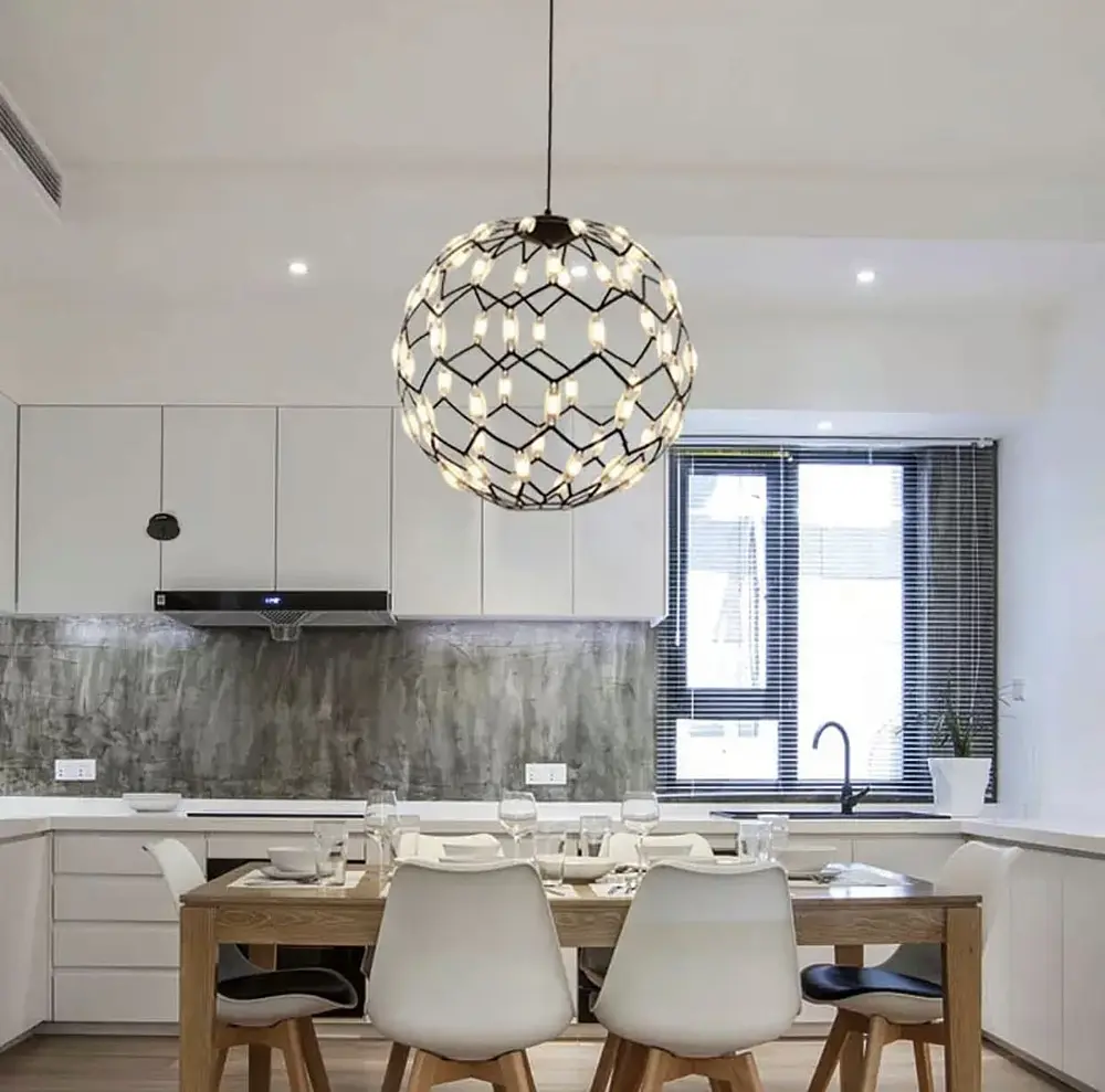 Світильник має форму купола, поверхня якого нагадує витончене мереживо з вкрапленнями десятків магічних світлячків, що являють собою вбудовані світлодіоди Потужність (Вт): 22 w Серія: D 1289 Колір основи: Чорний Колірна температура: 3000К Максимальна висота: 185 см Мінімальна висота: 48 см Розмір монтажної планки: 15 см Тип кріплення: Монтажна планка