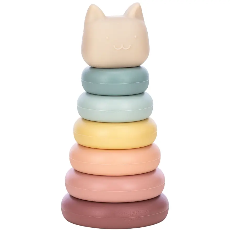 У комплекті: 7 різних силіконових будівельних блоків, які можна складати один на одного. Кожен будівельний блок різного кольору та розміру. Щоб легше складати і весело, будівельні блоки опуклі та округлі. Зверху на зібрану вежу одягається голова ведмедика, що робить вежу дуже цікавою та привабливою для дитини.