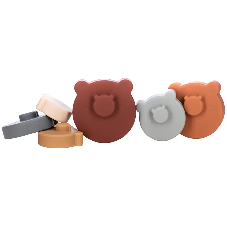 Створена для сприяння розвитку творчих здібностей і уяви вашої дитини, і в той же час це чудова іграшка для тренування дрібної моторики. Набір містить 7 різних силіконових будівельних блоків, які можна складати один на одного. Кожен будівельний блок різного кольору та розміру. Щоб легше складати та весело, будівельні блоки є опуклими та округлими. Зверху на зібрану вежу одягається голова ведмедика, що робить вежу дуже цікавою та привабливою для дитини. Різні розміри та кольори сприяють творчості, навичкам, спритності та терпінню вашої дитини. Чистити будівельні блоки дуже легко. Їх можна мити теплою пінною водою або просто мити в посудомийній машині. Виріб абсолютно безпечний для малюка, оскільки виготовлений з високоякісного харчового силікону, не містить BPA, свинцю, фталатів і не має запаху.