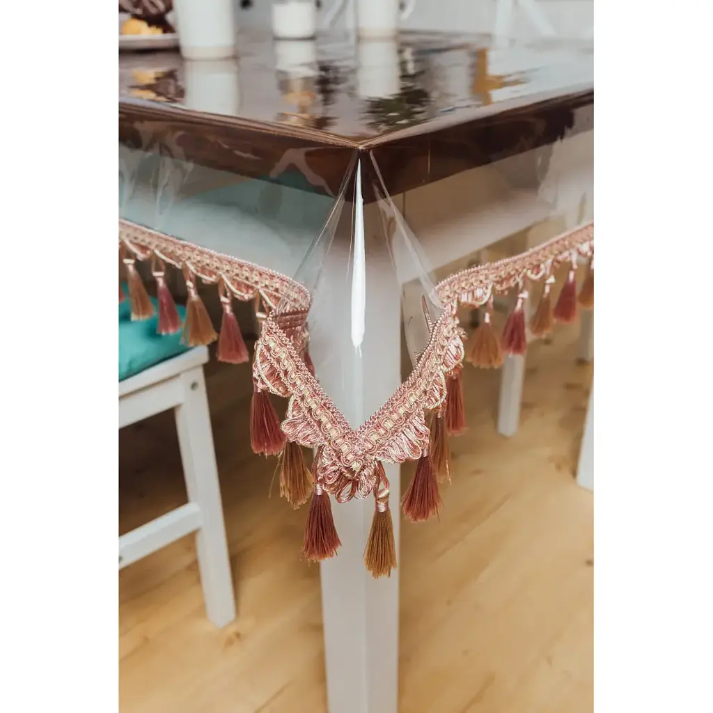 Скатертина силіконова з бахромою рожева пудра 400х120 см - фото 6