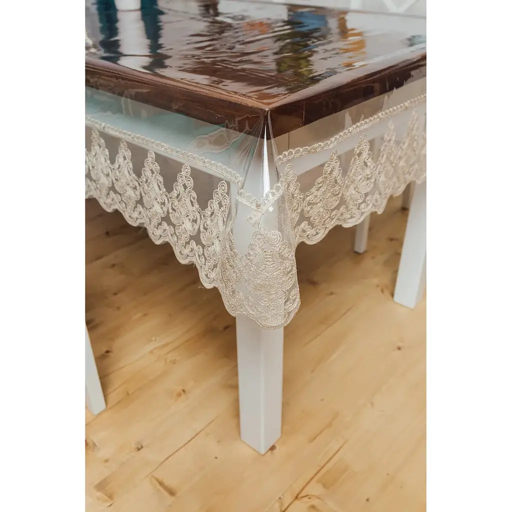 В першу чергу, таке покриття надійно захистить стільницю від пошкоджень, що виникають в процесі користування меблями (сколи, подряпини). До того ж, термостійкий матеріал з легкістю витримує температуру посуду з гарячими напоями. Мінімальні зусилля необхідно прикладати для догляду за скатертиною, істотно зекономлять Ваш час, адже достатньо лише протерти поверхню. Забудьте про прасування і прання - м'який силікон лягає на поверхню, як другий шар лаку, утворюючи гладку прозору поверхню.