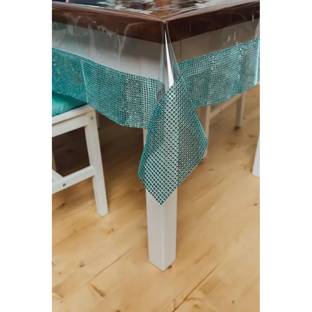 Скатертина силіконова з бірюзовою стразовою стрічкою 290х200 см - фото 3