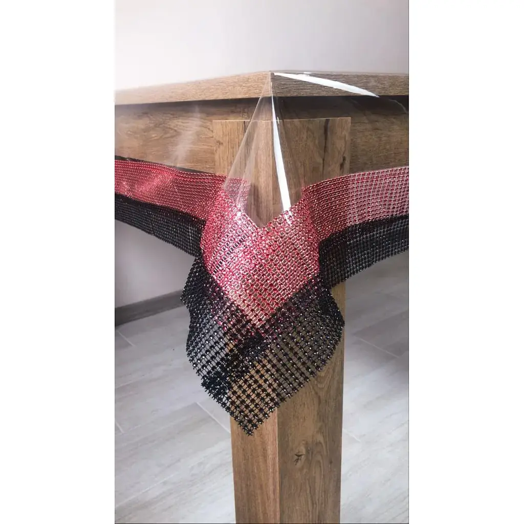 • Скатертина силіконова з червоно-чорною стразовою стрічкою 240х150 см - мініатюра 5