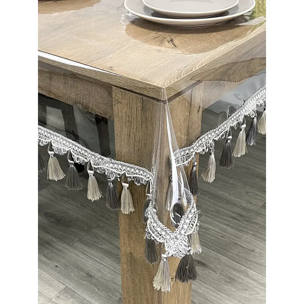 Скатертина силіконова з сіро-молочною бахромою 380х110 см - фото 6