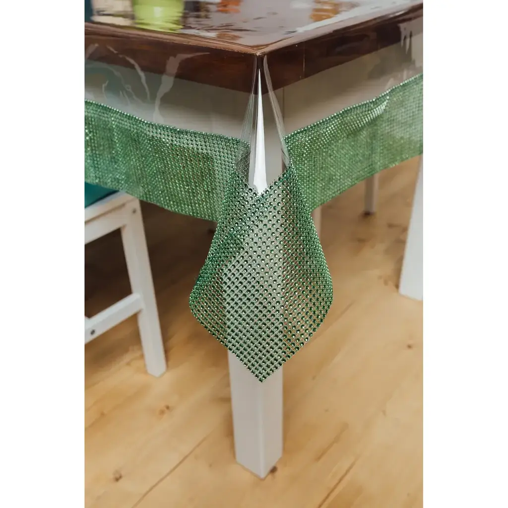 • Скатертина силіконова із зеленою стразовою стрічкою 210х160 см - мініатюра 4