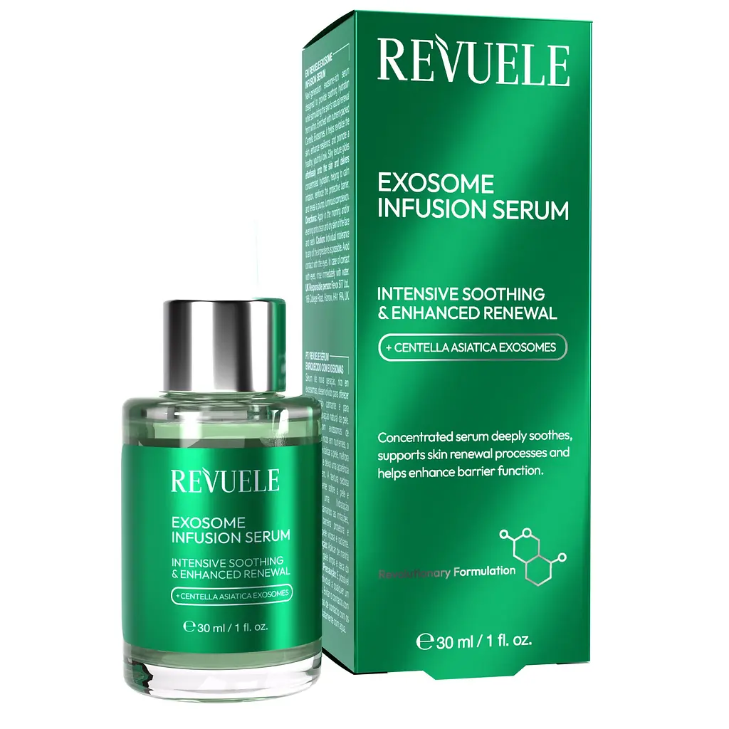 Відкрийте новий рівень регенерації з сироваткою Revuele Exosome infusion. Це високоефективний концентрат, що використовує передову технологію екзосом для глибокого оновлення та інтенсивного зволоження шкіри.