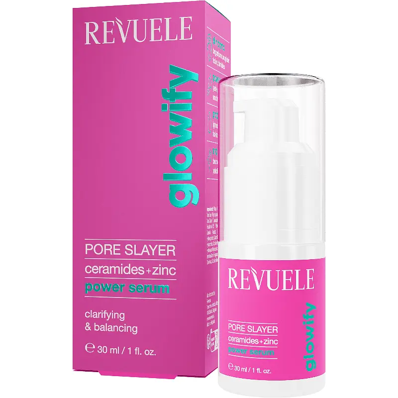 Сироватка спрямована на звуження пір та покращення текстури шкіри. Містить кераміди та цинк, які зміцнюють захисний бар'єр шкіри та регулюють роботу сальних залоз.