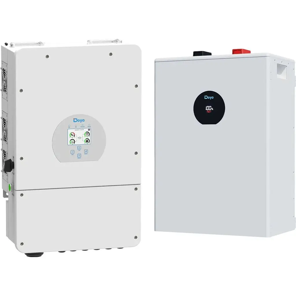 Система зберігання енергії побудована на базі гібридного інвертора Deye SUN-12K-SG02LP1-EU-AM3 потужністю 12 кВт з робочою напругою 57.4 В. Він формує однофазний змінний струм і забезпечує стабільне живлення від сонячних панелей та акумулятора. Рішення підходить для побутових об’єктів, комерційних приміщень і малого бізнесу, де важлива надійність і гнучкість керування енергією.