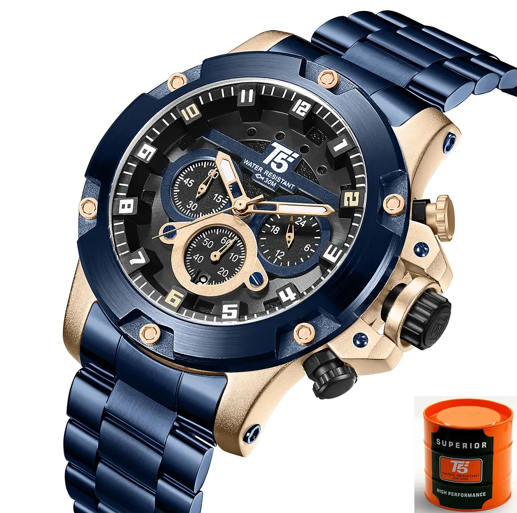T5 - бренд чоловічих ексклюзивних годинників зі сталі з унікальним дизайном та високою якістю. Годинники мають неповторний дизайн, комплектуються японським механізмом Miyota та мають оригінальне пакування в металевій коробочці у формі бочки. Бренд T5 вперше ексклюзивно представлений в Україні. Модель T5 Design виграла номінацію "найкращий дизайн 2024 року" на всесвітній виставці HK Watch Fair та має неперевершений зовнішній вигляд. Разом з оригінальним пакуванням в металевій коробочці у вигляді бочки це робить дану модель оптимальним вибором як на подарунок, так і для себе.В комплекті йде офіційна гарантія на 12 місяців.