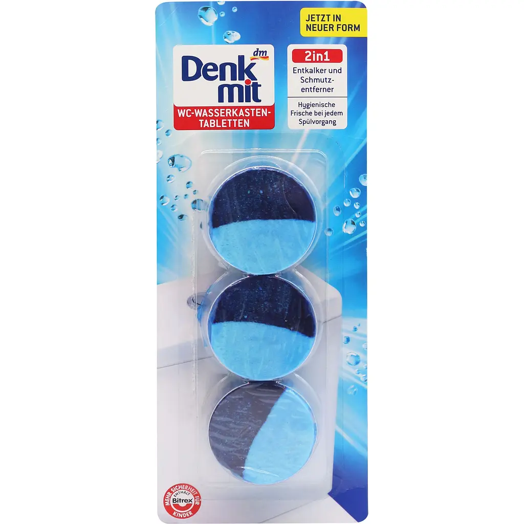 Таблетки для бачка унітазу Denkmit - це зручний та ефективний засіб для очищення та дезінфекції бачка унітазу. Виготовлені з високоякісних компонентів, таблетки забезпечують ефективне очищення внутрішніх поверхонь бачка та знижують рівень бактерій.