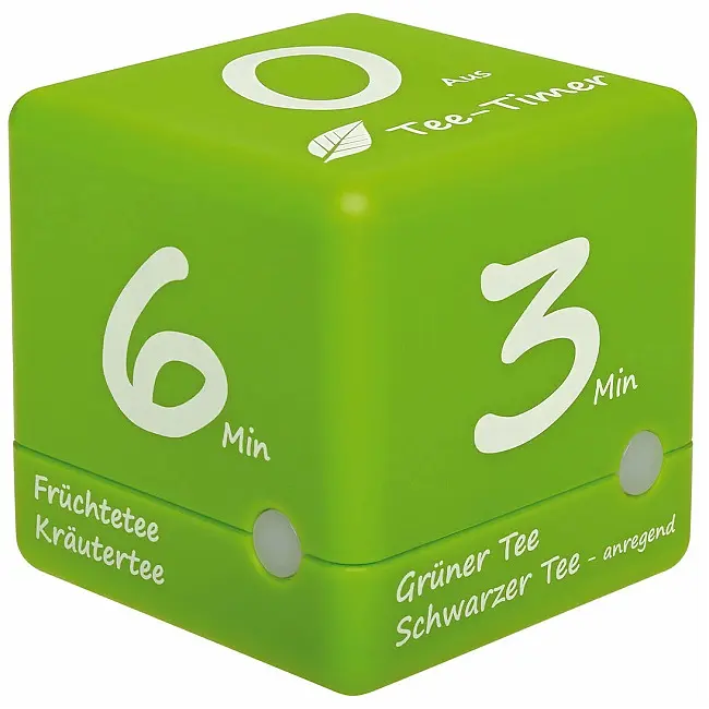 Виробник: TFA Dostmann GmbH & Co.KG, GermanyОсобливості:Ідеальний подарунок для любителів чаюКерувати так само просто, як і дитячою іграшкою4 заданих часу приготування 3 - 4 - 5 - 6 хв. для різних видів чаюПросто поверніть куб з потрібним часом вгору, і відлік відразу почнетьсяФліп-дисплей, який обертається, показує час, що залишивсяСвітлодіод пульсує і блимає після закінчення часу (за бажанням)Акустичний сигнал (гучний, тихий, вимкнений)Пройдений часПопередня тривога (за бажанням)Перемикач Увімкн. / Вимкн.Зареєстрований дизайн TFAЦей таймер-куб спеціально розроблений для приготування чаю і простий у використанні. Чотири найбільш розповсюджених часу заварювання (3 - 4 - 5 - 6 хвилин) попередньо встановлені і надруковані з боків куба. Просто переверніть бажаний час вгору і таймер відразу запуститься. Маленький цифровий фліп-дисплей обертається і показує час, що залишився. Червоний світлодіодний індикатор пульсує. Коли обраний час приготування досягнуто, світлодіодний індикатор блимає, і звуковий сигнал нагадує вам про необхідність завершення процесу приготування. Так любителі чаю можуть домогтися ідеального заварювання. Поверніть таймер на нейтральну сторону, щоб вимкнути будильник. Залежно від використання і ваших особистих переваг, таймер чаю пропонує безліч варіантів налаштування: звук будильника встановлюються на гучний або тихий, увімкнений або вимкнений повністю. Світлодіод також може бути вимкнений. Також доступна функція попередньої тривоги, і її можна встановити на 10 секунд до закінчення часу зворотного відліку.Час приготування: 3 хвилини: зелений чай, чорний чай, що бадьорить4 хвилини: міцний зелений чай, чорний чай5 хвилин: чай ройбуш, міцний чорний чай6 хвилин: фруктовий чай, трав'яний чай
