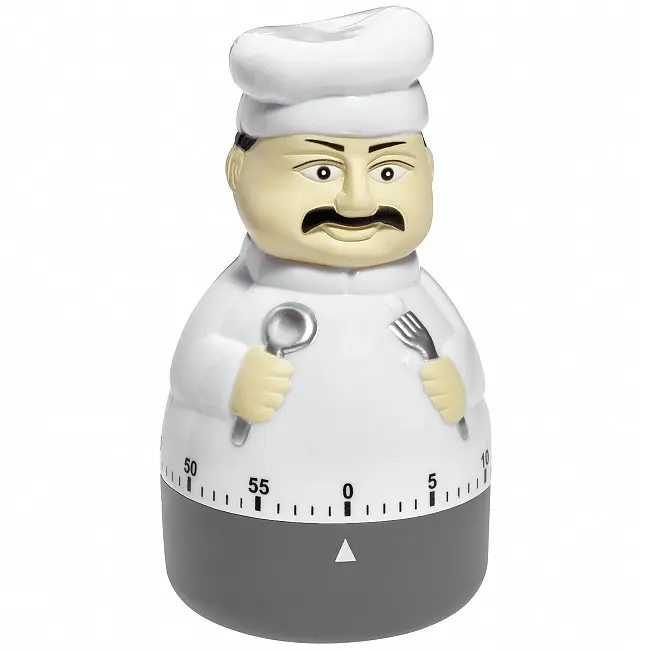 Виробник: TFA Dostmann GmbH & Co.KG, GermanyОсобливості:Кухонний таймер у формі кухаряМеталевий заводний механізм, батарея не потрібнаПлавно регулюється до 60 хвилинЗвукова сигналізація після закінчення часуПластиковий корпусПеред використанням обов'язково повністю заведіть механічний таймер.
