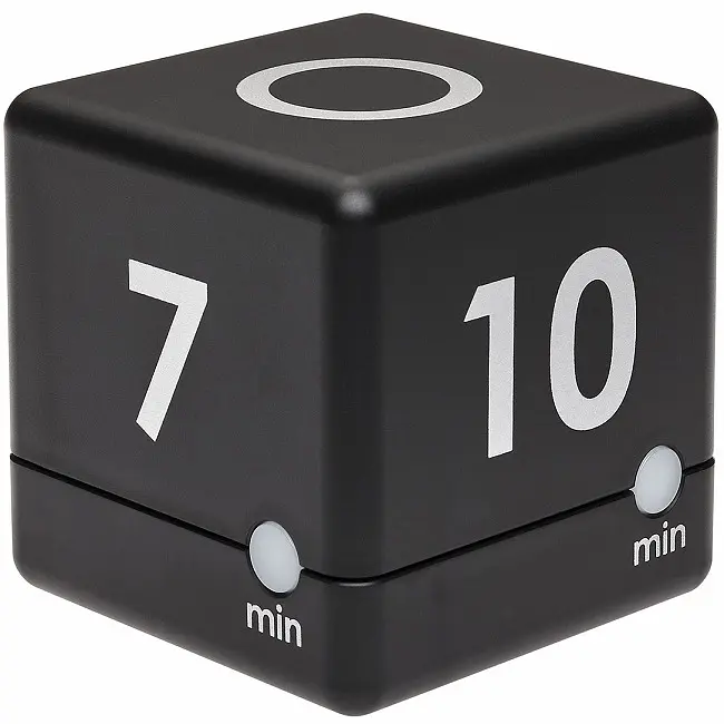 Виробник: TFA Dostmann GmbH & Co.KG, GermanyОсобливості:Легке управління часом для будинку, школи, освіти, спорту та ігор4 попередньо встановлених значень часу зворотного відліку 3–5–7–10 хв.Просто встановіть куб з потрібним часом вгору, і відлік починається негайноФліп-дисплей, який обертається, показує час, що залишивсяСвітлодіод пульсує і блимає після закінчення часу (за бажанням)Акустичний сигнал (гучний, тихий, вимкнений)Пройдений часПопередньо налаштований будильник (за бажанням)Перемикач Увімкн./Вимкн.Зареєстрований дизайн TFACube Timer - ідеальний таймер для роботи і навчання, для тривалих тренувань або для приготування їжі та випічки на кухні. Таймер простий у використанні. Чотири попередньо встановлених часу зворотного відліку (3–5–7–10 хвилин) надруковані на сторонах куба. Просто переверніть бажану сторону часу вгору, і зворотний відлік почнеться негайно. Маленький цифровий дисплей перевертається, коли ви повертаєте куб, і він показує час, що залишився. Червоний світлодіодний індикатор блимає. Після досягнення обраного часу світлодіодний індикатор блимає, а звуковий сигнал нагадує вам про завершення поточного заняття. Щоб вимкнути будильник, поверніть таймер в нейтральне положення. Залежно від використання або ваших особистих переваг, Cube Timer пропонує безліч варіантів налаштування: звук будильника можна встановити на гучний або тихий, залишити увімкненим або повністю вимкнути. Світлодіодне підсвічування також можна вимкнути. Також доступна функція попередньої тривоги, і її можна налаштувати так, щоб вона дзвонила за 10 секунд до того, як закінчиться час зворотного відліку.