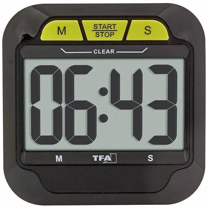 Побити свій особистий рекорд у спорті, покращити тайм-менеджмент на роботі або приготувати ідеальну яєчню за 5 хвилин: Це лише деякі з можливих функцій цього цифрового таймера з вбудованим секундоміром від TFA. Зручний розмір робить його практичним повсякденним супутником, а великі цифри легко читаються. Завдяки функції автоматичного вимкнення цей пристрій економить енергію, коли він не використовується. При досягненні встановленого часу вас сповістить звуковий сигнал з двома рівнями гучності на вибір - ідеально підходить для офісу, під час тренування або на кухні. Ви можете встановити таймер тривалістю до 99 хвилин і 59 секунд. Розмістіть пристрій на столі за допомогою розкладної підставки або прикріпіть його до різних металевих поверхонь за допомогою магніту. Крім того, ви можете протягнути стрічку через петлю для шнура і просто повісити таймер на шию - таким чином, цей корисний пристрій завжди буде у вас під рукою. Одна стандартна батарейка типу ААА (не входить до комплекту) забезпечує живлення таймера, що робить його гнучким у використанні. ФУНКЦІЇ Таймер зворотного і прямого відліку Секундомір 2 рівні гучності Функція автоматичного вимкнення З магнітом, настільною підставкою та вушком для шнурка Великий дисплей ЗНАК ЯКОСТІ TFA Продукція від TFA переконує у функціональності та дизайні.