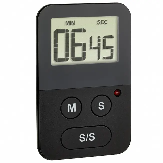 Виробник: TFA Dostmann GmbH & Co.KG, Germany Особливості: Таймер і секундомір Просте налаштування часу Зі світлодіодною сигналізацією Кріплення за допомогою магніту Екстра тонкий дизайн Зворотний відлік з анімованим ефектом переходу Максимум встановлення часу: 99 хвилин і 59 секунд Батарейка у комплекті Маленький, практичний і завжди під рукою. З цим надтонким цифровим таймером ви не тільки зможете приготувати ідеально зварене яйце, а й зможете розраховувати час тренувань або управляти своїм часом на роботі або в школі. Ви будете негайно повідомлені звуковим сигналом, як тільки час мине. Після закінчення зворотного відліку також блимає невеликий червоний світлодіодний індикатор. Таймер зворотного відліку також має практичну функцію секундоміра. Ви можете швидко і легко прикріпити таймер до будь-якої металевої поверхні завдяки магніту.