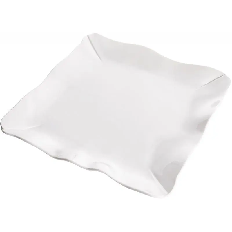 Набір 2 обідні квадратні тарілки "White City" - білосніжна колекція столового сервірувального посуду з фарфору. Оригінальна форма "Хвиля". Плоска обідня тарілка квадратної форми. Розмір 25.5х25.5 см, висота - 2.5 см. У комплекті 2 тарілки. Для домашнього та професійного інтенсивного використання. Тарілки "White City" можна мити в посудомийній машині та використовувати для підігрівання в мікрохвильовій печі.