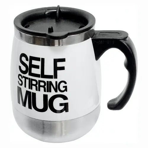 Кружка-мішалка з гвинтиком всередині, який крутиться при натисканні на кнопку на ручці. Добре розмішує цукор, змішує каву з молоком. Працює від двох мініпальчікових батарейок.