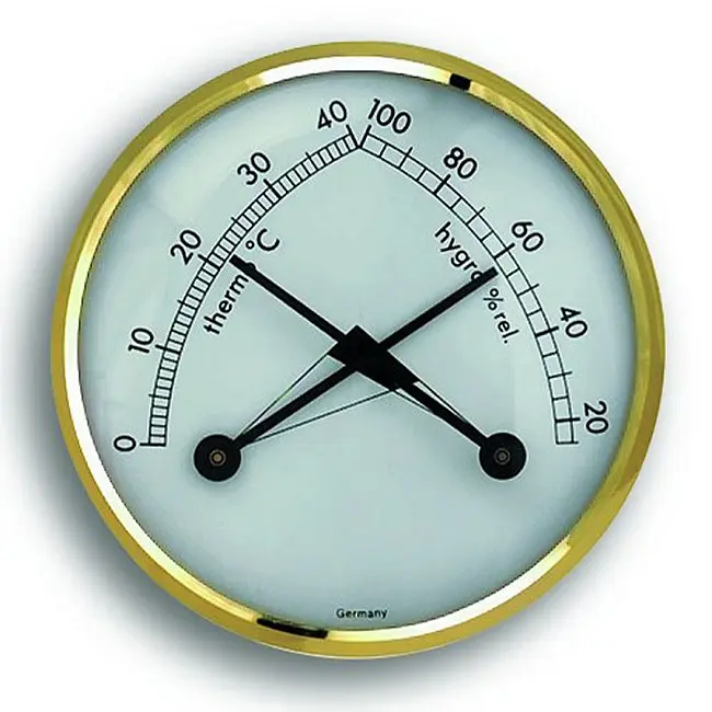 Виробник: TFA Dostmann GmbH & Co.KG, GermanyОсобливості:Вироблено в НімеччиніДля контролю температури та вологостіДля здорового клімату у приміщенніБіметалева технологіяКорпус з латунним кільцемНе потребує батарейокГарантія 3 рокиЧи почуваємось ми добре і комфортно вдома, багато в чому залежить від якості повітря в приміщенні. Дуже важливо контролювати вологість і температуру повітря у приміщенні, оскільки надто вологе повітря у приміщенні сприяє появі небезпечної цвілі; Проте надто сухе повітря у приміщенні може негативно вплинути на наше самопочуття в кількох аспектах: шкіра та дихальна система можуть постраждати та зазнати впливу інфекцій, можуть з'явитися алергія та симптоми астми. Домашні тварини, рослини, дерев'яні підлоги, антикварні меблі, музичні інструменти та книги також потребують належних кліматичних умов. Цей компактний термогігрометр з латунним обідком є ідеальним приладом для моніторингу клімату у приміщенні. На шкалі виділено область оптимального співвідношення температури та вологості. Ви можете легко стежити за температурою та вологістю та регулювати їх за допомогою спрямованого обігріву та вентиляції. Так ви створите приємне і здорове місце існування і навіть заощадите на витратах на опалення. Механізм гігрометра складається з біметалічної котушки з покриттям, що обертається навколо металевого дроту. Температура вимірюється за допомогою перевіреної біметалічної технології.Термогігрометр повністю виготовлений у НімеччиніОсновним елементом TFA є власне виробництво механічних погодних інструментів. TFA створює продукцію, що відповідає етикетці «Зроблено в Німеччині», з використанням найсучасніших технологій виробництва і традиційного ремісничого виробництва.Продукція від TFA переконує в функціональності і дизайні.