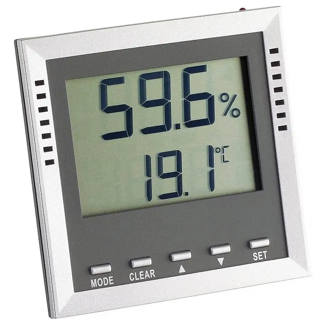 Особливості:Моніторинг температури та вологості повітряІдеально підходить для професійного вимірювання клімату у приміщенніГігрометр з високоточним сенсором "Swiss Precision sensor"Для контролю температури (точність ±1°C) та вологості (точність ±3% у діапазоні 35...75%, в іншому ±5%)Макс.-хв. значенняІндикація точки росиТемпература вологого термометраАкустична та візуальна функція тривоги для всіх параметрівЗареєстрований дизайн TFAГігрометр із сенсором «Swiss Precision sensor» Спільно з компанією Swiss high tech TFA розвиває високоякісний сенсор для гігрометрів з точністю промислових вимірювальних приладів: +/- 3% відносної вологості (в діапазоні 35 ... 75%, в іншому + / - 5%).Цифровий термогігрометр KLIMA GUARD є ідеальним вимірювальним приладом для моніторингу клімату у приміщенні. Температуру та вологість у приміщенні можна легко контролювати та регулювати за допомогою спрямованого опалення та вентиляції. Це створює комфортне і здорове місце існування і навіть економить витрати на опалення. Термогігрометр KLIMA GUARD оснащений швейцарським прецизійним датчиком і дуже точно відображає значення температури та вологості. Тому він також ідеально підходить для професійного використання, наприклад, для клімат-контролю у складських та випробувальних приміщеннях. Крім того, пристрій має різні корисні спеціальні функції, такі як інформація про максимальні та мінімальні значення, точка роси, температура вологого термометра, а також функція звукової та візуальної сигналізації для всіх параметрів.