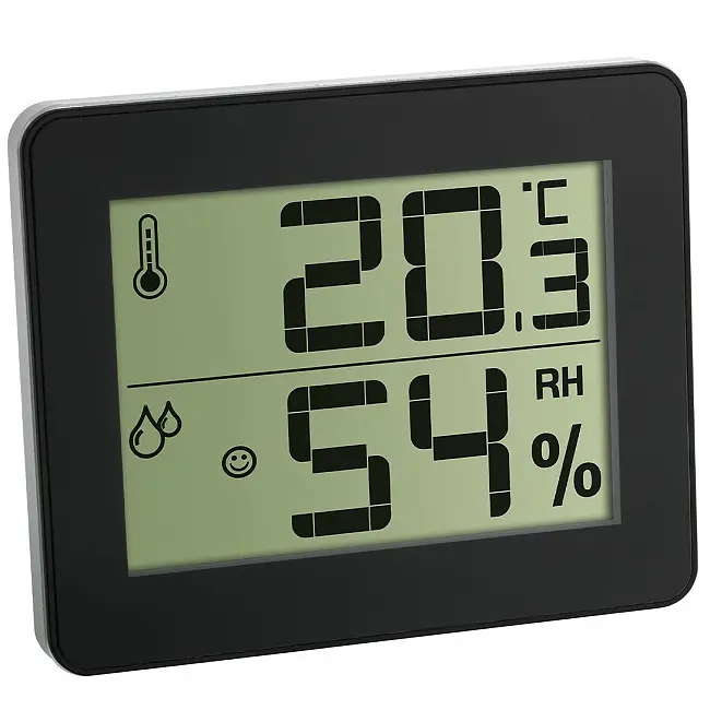 Виробник: TFA Dostmann GmbH & Co.KG, GermanyОсобливості:Для здорового клімату в приміщенніВідображення температури і вологості повітря в приміщенніВеликий дисплейВстановлення настільне / настіннеМакс.- Мін. значенняІндикатор рівня комфорту у вигляді смайликаУльтратонкий дизайн з глянцевою поверхнеюБатарейка у комплектіПринаймні дві третини життя людини проводяться в приміщенні. Чи відчуваємо ми себе добре і комфортно вдома, багато в чому залежить від якості повітря в приміщенні. У занадто вологих приміщеннях зростає цвіль, але надмірно сухе повітря може завдати шкоди нашому здоров'ю, а також постраждають домашні тварини, рослини, дерев'яні підлоги і антикварні меблі. Цей сучасний ультратонкий термогігрометр з глянцевою поверхнею є ідеальним приладом для моніторингу клімату в приміщенні. Ви можете легко стежити за температурою і вологістю і регулювати їх за допомогою цільового опалення та вентиляції, коли значення знаходяться за межами зони комфортного рівня. Це створює приємне і здорове середовище проживання і навіть економить витрати на опалення. Якщо з'являється значок смайлика, значення є ідеальними. Найвищі і найнижчі значення зберігаються і відображаються при натисканні на кнопку.