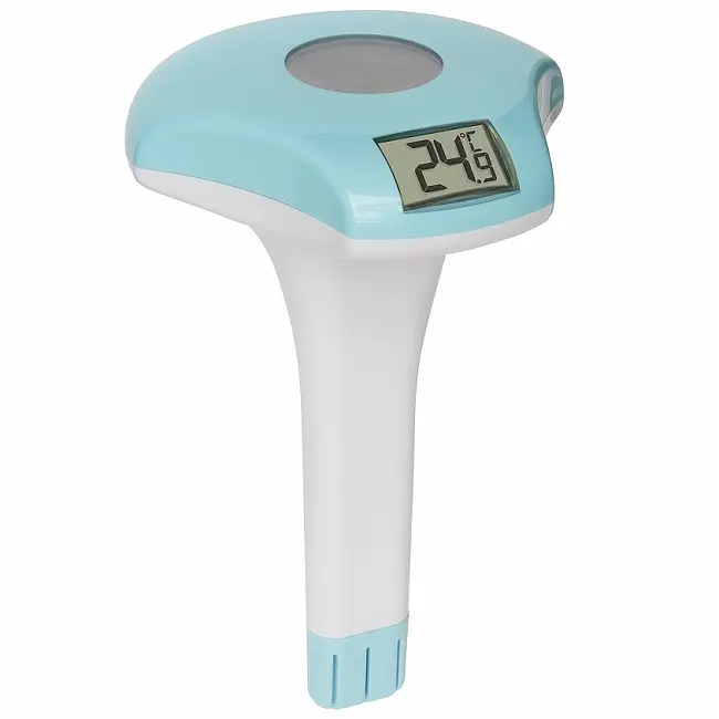 Виробник: TFA Dostmann GmbH & Co.KG, Germany Особливості: На сонячних батареях. Плаває на воді. Легке зчитування температури води З тросом для кріплення (1м). Глибина вимірювання близько 165 мм. Інтервал вимірювання: 60 секунд. Водонепроникний IPX8. Точність температури ±1°C від 0 до 50°C, інакше ±2°C Ура, з головою у воду! Через 3 секунди: Брррр, занадто холодно! Можливо, було б краще просто спочатку засунути у воду мізинець? Цей цифровий термометр на сонячних батареях для басейну запобігає холодним і вологим сюрпризам. На дисплеї ви можете відразу побачити, чи можете ви пірнути прямо у воду або краще робити це повільно. Термометр використовує сонце та вимірює температуру води за допомогою екологічно чистої сонячної енергії. Візуально він вписується в будь-який басейн завдяки яскраво-бірюзовому дизайну та гармонійно вписується у воду та ландшафт купання. Шнур для кріплення має довжину 1 метр та утримує датчик температури на місці. Якісний продукт від TFA Dostmann GmbH & Co.KG, Germany
