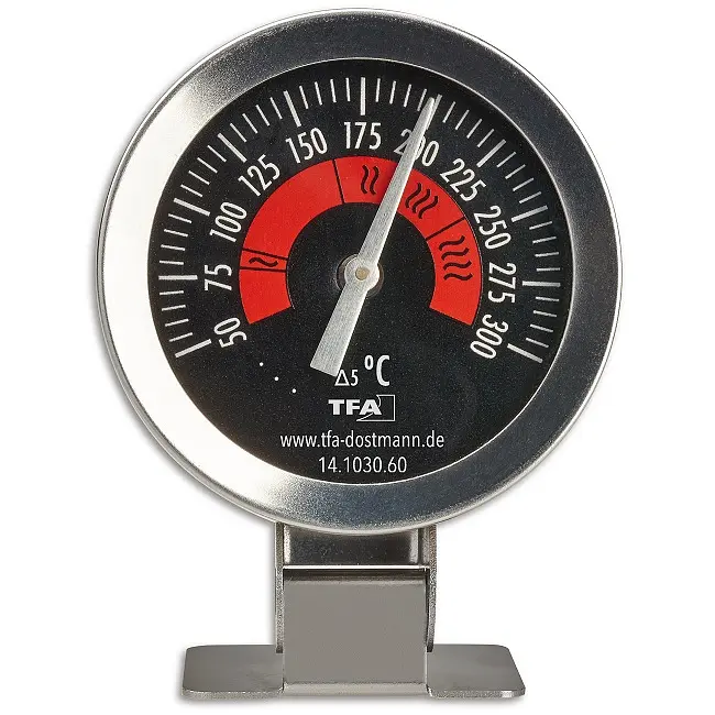 Виробник: TFA Dostmann GmbH & Co.KG, Germany Особливості: Для контролю температури духовки Температура вимірюється за допомогою перевіреної біметалевої технології З гнучким тримачем і шкалою, що обертається Для підвішування, встановлення або кріплення до напрямних духовки Виготовлений із високоякісної нержавіючої сталі Зареєстрований дизайн TFA Інформація про точну температуру має важливе значення для приготування їжі в духовці. Цей термометр для духовки розроблено саме для цієї мети.