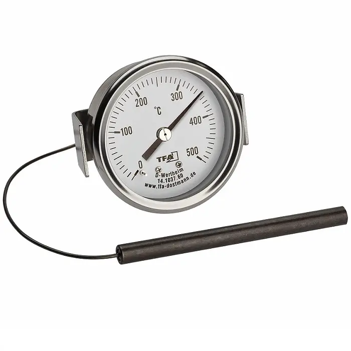 Ідеальний помічник для всіх любителів м'яса, шашликів і гурманів. Незалежно від того, чи це піца, реберця чи ідеальний хліб на заквасці, цей термометр показує ідеальну температуру в робочій камері під час непрямого смаження на грилі або випікання із закритою кришкою та дозволяє готувати ваші шедеври з високою точністю в потоці гарячого повітря. Діапазон температур до 500°C допоможе вам вибрати правильну температуру для копчення, смаження або запікання. Професійний термометр для духовки виготовлений з високоякісної нержавіючої сталі і може використовуватися як запасна частина або як модернізація наявної кам'яної печі, печі для піци, барбекю, коптильні, коптильної печі або візка для барбекю. Термометр просто вставляється в попередньо просвердлений отвір (необхідний діаметр отвору прибл. 60 мм) і може бути закріплений на місці за допомогою U-подібного затискача. ФУНКЦІЇ Для перевірки температури в камері приготування до 500°C печі для піци, печей на дровах, хлібопічок, грилів або коптилень З U-подібним затискачем для кріплення та гнучким металевим зондом Виготовлений з високоякісної нержавіючої сталі Температурна шкала зі скляною кришкою В якості запчастини, для дооснащення або самостійного виготовлення Вбудовується в отвір діаметром прибл. 60 мм з U-образним затискачем 76 мм Кабельний датчик ø 8 мм x 100 мм Металевий кабель довжиною прибл. 150 см Знак якості TFA Продукція від TFA переконує у функціональності та дизайні.