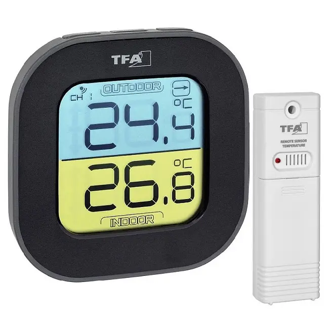 Виробник: TFA Dostmann GmbH & Co.KG, GermanyОсобливості:Бездротова передача температури зовнішнього повітря через передавач (макс. 3) на відстань до 100 м (на відкритому просторі)Стрілки тенденції зміни температуриІндикація температури в приміщенніМакс.-мін.-значенняКольоровий дисплейНастінна або настільна установкаЗареєстрований дизайн TFAЗавжди в курсі температури - за допомогою бездротового термометра "FUN" від TFA Dostmann.Температура зовнішнього повітря на місці визначається окремим бездротовим передавачем і відображається стрілка тенденції зміни на кольоровому дисплеї; внутрішній датчик вимірює температуру в приміщенні.Регулювання температури в приміщенні є важливим фактором для створення комфортного і здорового середовища проживання і допомагає економити енергію. Навіть зниження температури повітря на 1 градус може заощадити до 6% витрат на опалення.З температурою зовнішнього повітря ви отримуєте достовірну і важливу інформацію для вашого будинку, саду, відпочинку і роботи.Крім того, пристрій має пам'ять для максимальних і мінімальних значень.Можна підключити ще два датчика температури, що дозволяє контролювати інші приміщення, наприклад, в дитячій, спальні, погребі чи гаражі.