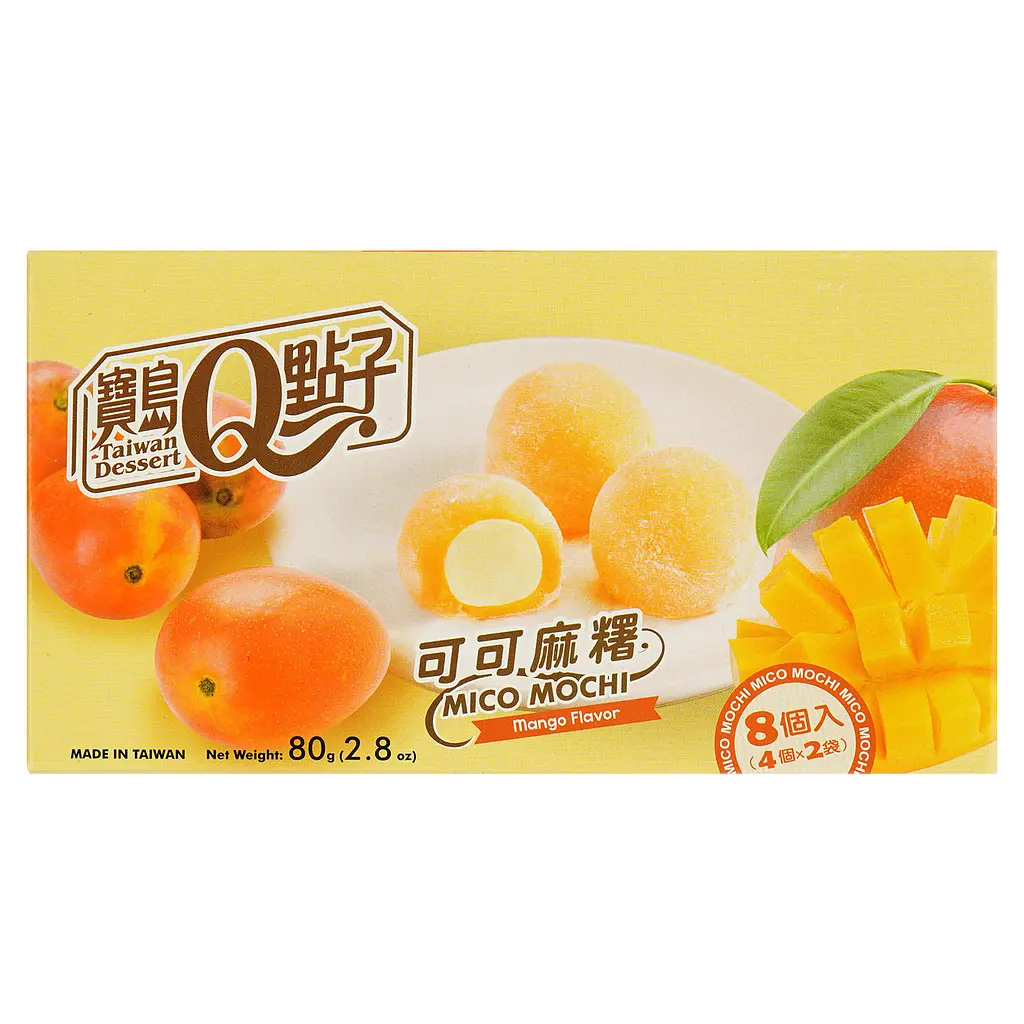 Незвичний десерт з м’якою еластичною оболонкою та ніжною начинкою. Смак какао гармонійно поєднується з манговим кремом, створюючи цікаве тропічне поєднання. Тістечко свіже, не надто солодке, добре смакує охолодженим. Чудовий варіант для тих, хто хоче спробувати щось нове та оригінальне.