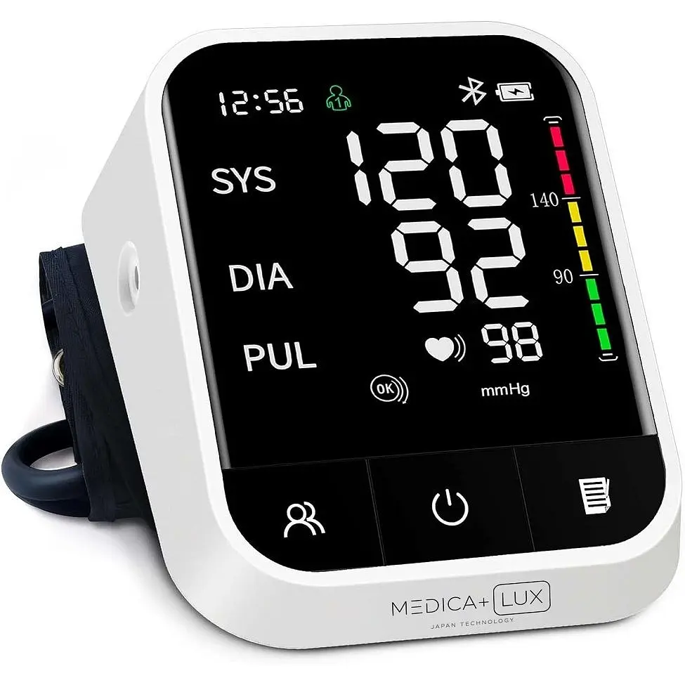Автоматичний тонометр Medica+ LUX CardiControl X - цей сучасний тонометр забезпечує точні вимірювання артеріального тиску та пульсу за допомогою осцилометричного методу, даруючи вам впевненість у вашому здоров'ї.