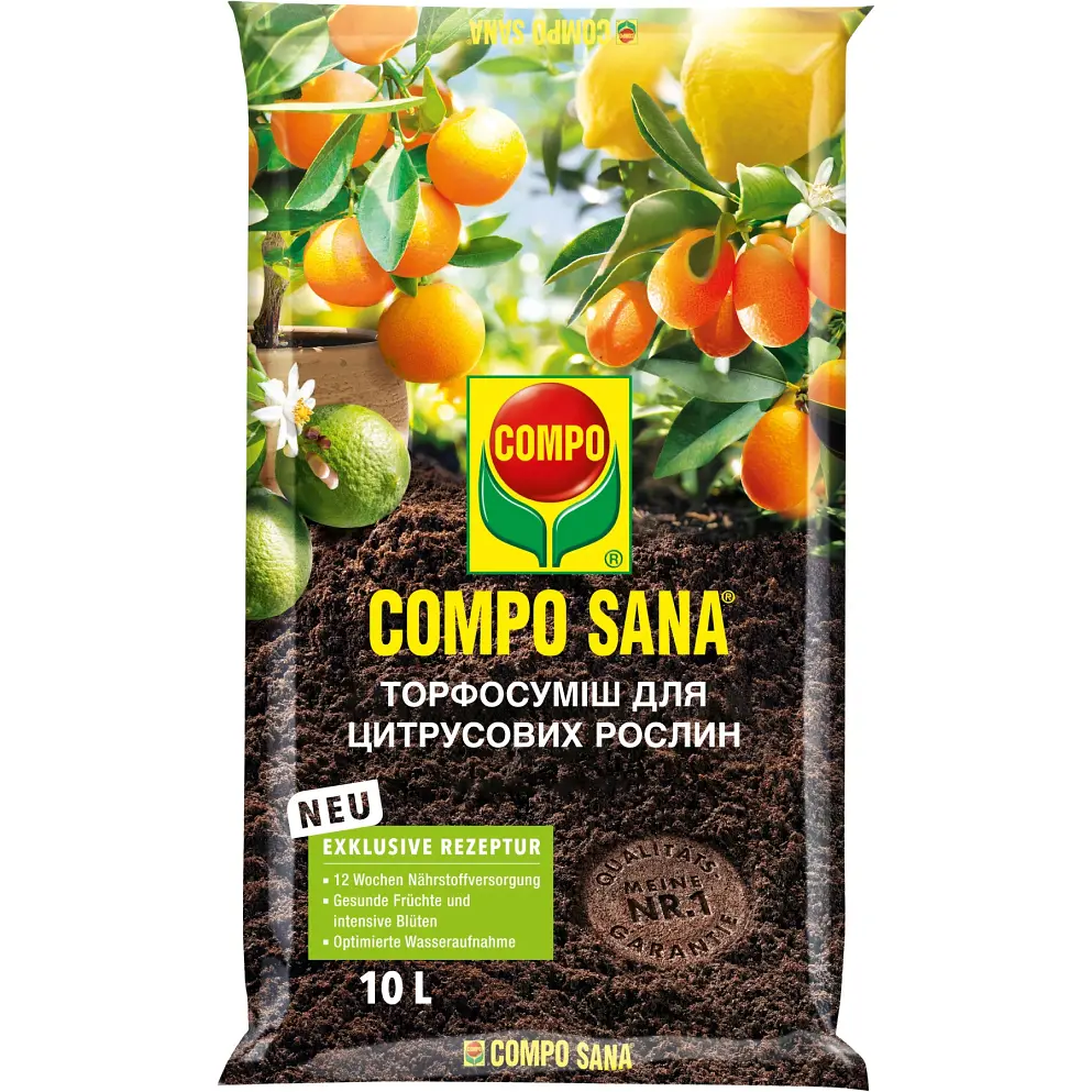 Спеціальний ґрунт для особливих вимог тропічних та цитрусових рослин. Високоякісні мінерали забезпечують збалансоване співвідношення поживних речовин для утворення красивих квітів і плодів. Активна формула з мікроелементами COMPO для цитрусових - джерело вітамінів для цвітіння і плодоношення.