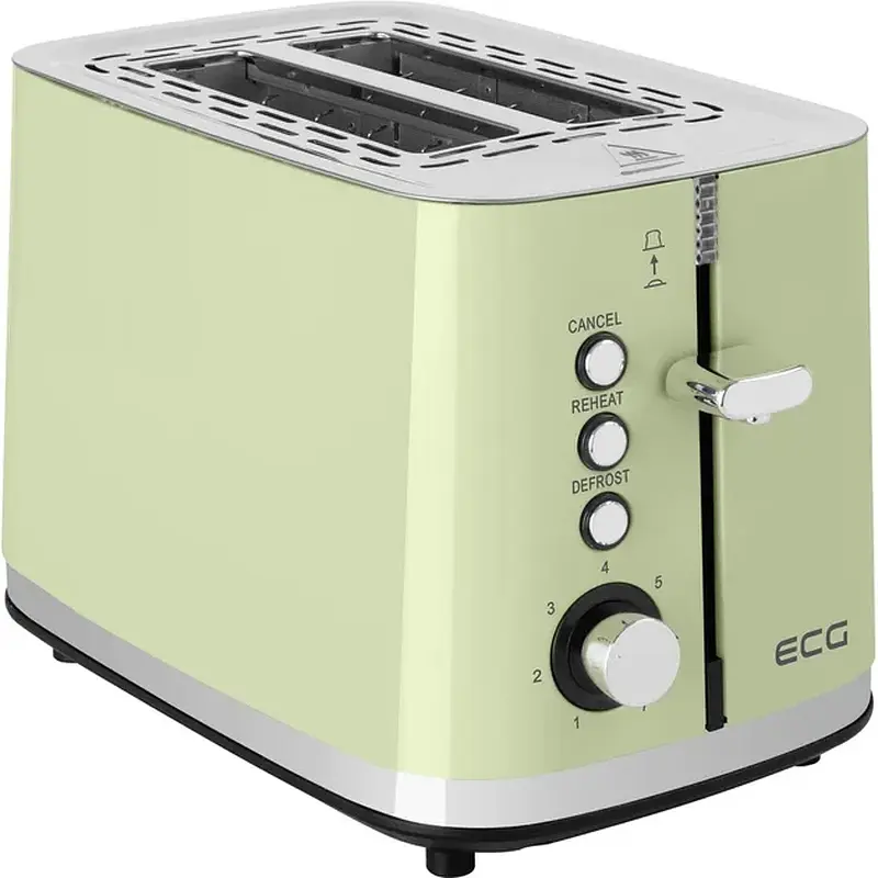 Для рівномірного приготування передбачено автоматичне центрування скибочок, а автоматичне відключення та викид тостів забезпечують безпеку використання. Теплоізольовані стінки захищають від випадкових опіків, а нековзні ніжки гарантують стійкість на столі. Знімний ящик для крихт полегшує догляд за приладом, а передбачене місце для зберігання кабелю допомагає підтримувати порядок на кухні. Тостер ECG ST 2766 Vintage Olive поєднує функціональність, надійність та стильний зовнішній вигляд, створюючи ідеальне рішення для вашого будинку.