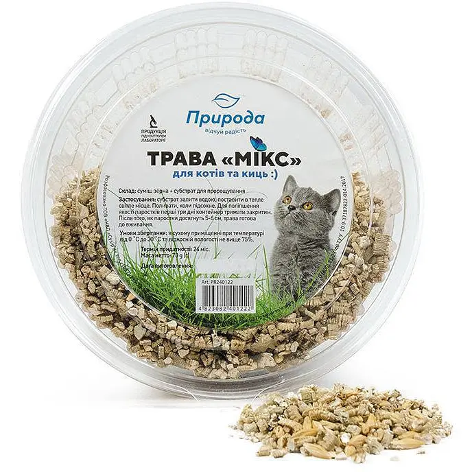 Добірні зерна та екологічно чистий наповнювач — все це гарантує, що трава для вашого улюбленця буде якісною та апетитною. Молоді паростки злакових забезпечують тварину вітамінами, цинком, марганцем, рибофлавіном, пантотеновою кислотою та іншими корисними речовинами, покращують перистальтику кишечника і сприяють його очищенню, допомагають урізноманітнити меню і навіть зняти стрес.