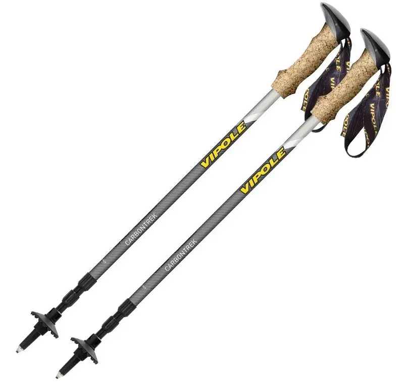 Найлегші повнорозмірні трисекційні палиці Carbontrek від Vipole виготовляються з високомодульного карбону, що має малу вагу та високу міцність. Трекінгові палиці Vipole Carbontrek Cork в першу чергу можна рекомендувати включити у своє спорядження при підході до скельних масивів, а також при складному трекінгу та тривалих походах, коли йде боротьба за кожен зайвий грам спорядження. Секції фіксуються за допомогою надійної класичної системи затиску TwistLock. Ергономічна рукоятка тепер виконана з натурального корку, та має найкращі абсорбуючі та теплоізоляційні властивості. Наконечник з карбіду вольфраму має високу твердість і характеризується великою стійкістю до зношування.