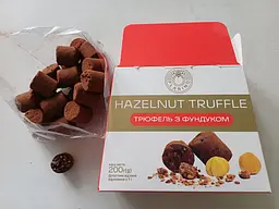 Дуже смачні цукерки! Ніжний кремово-шоколадний трюфель із приємною текстурою та хрусткими меленими горішками. Чудово поєднуються з чаєм або кавою. Окремий плюс - стильне й акуратне пакування, яке ідеально підходить для подарунка: за смак точно не буде соромно.