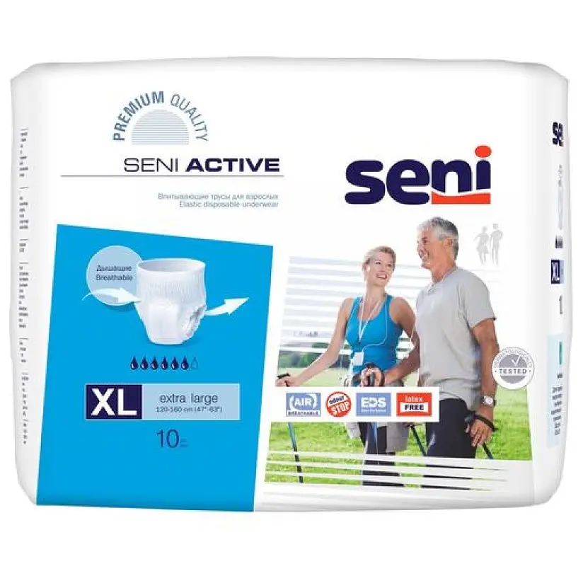 Труси-підгузки для дорослих Seni Active забезпечать комфортний захист для людей, які страждають на нетримання, а також ведучих рухливий спосіб життя та для учасників занять з рухової реабілітації.
