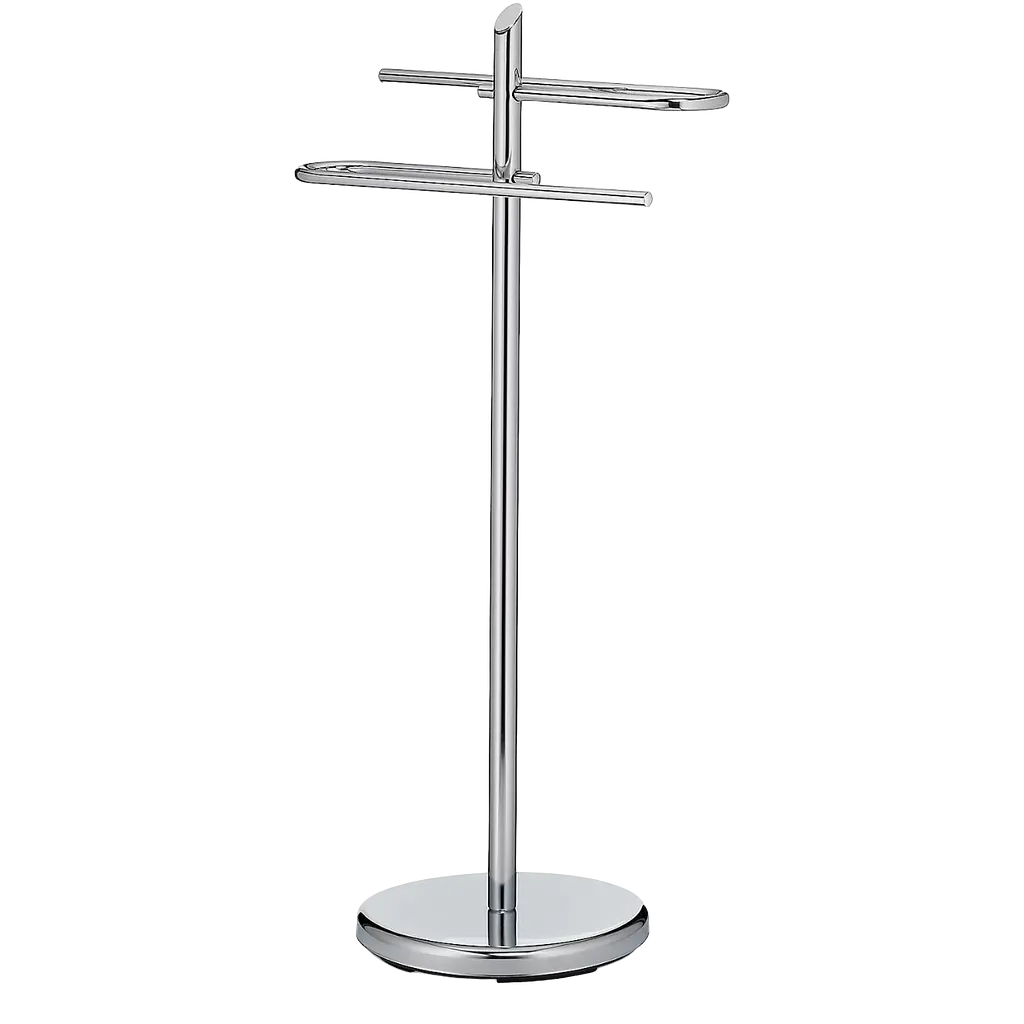Конструкція забезпечує достатній простір між підвішеними рушниками, що прискорює їхнє висихання. Легкий, але стійкий тримач дозволяє легко переміщати підставку у зручне місце.
